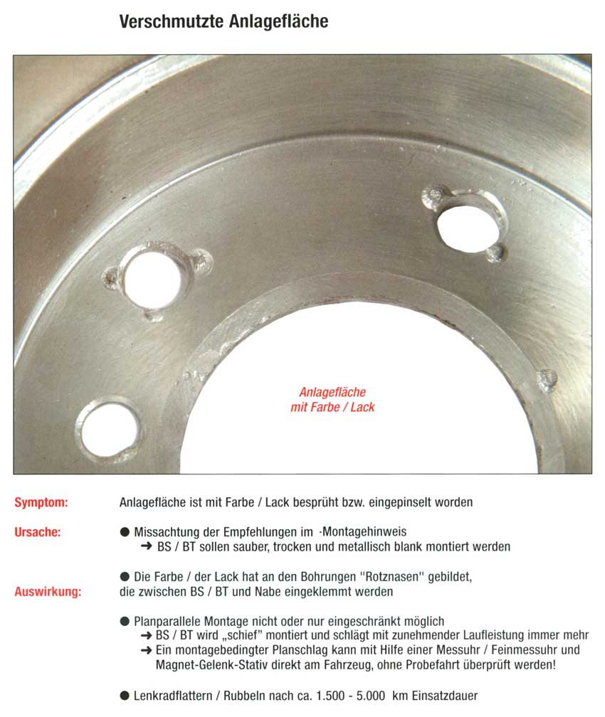 • Verschmutzte Anlageflächen Verzunderung Bremsscheiben Ausführungsarten .
