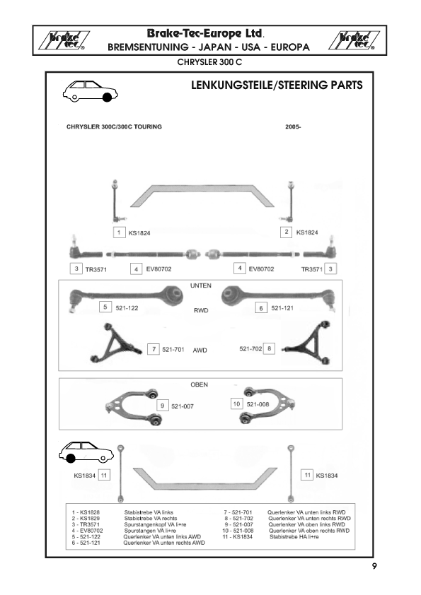 Hauptbremszylinder Spurstangenköpfe Lenkungsteile