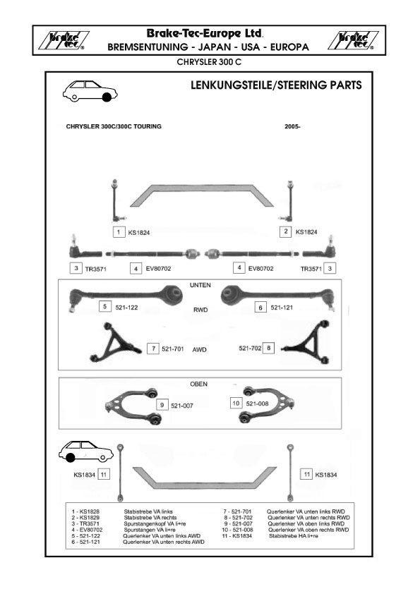 Lenkungs- und Spurstangenteile USA Chrysler 300 C Spurstangen - Spurstangenköpfe - Lenkungsteile Abbildungen